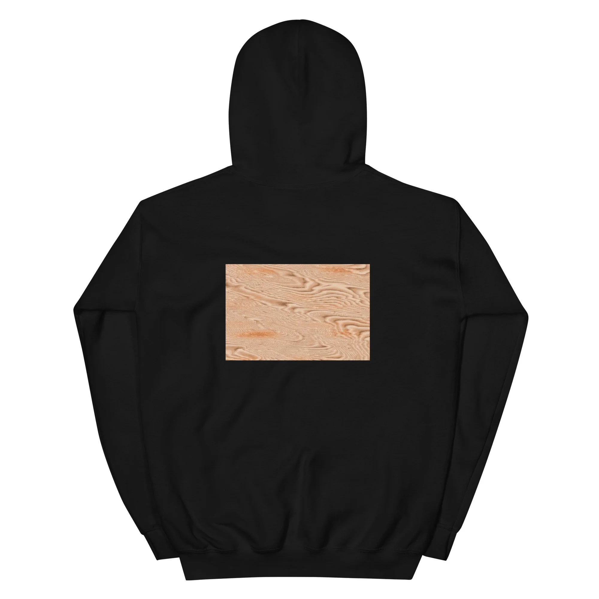 it's a chestnut wood plank on a hoodie. one might say it's a woody